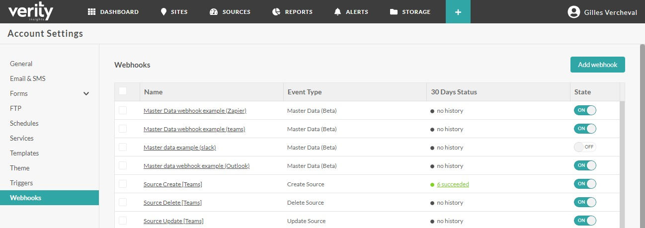 Please note that certain webhooks are trigerred "account wise". For example, source events will be triggered for all sources, there is no need to configure it anywhere.