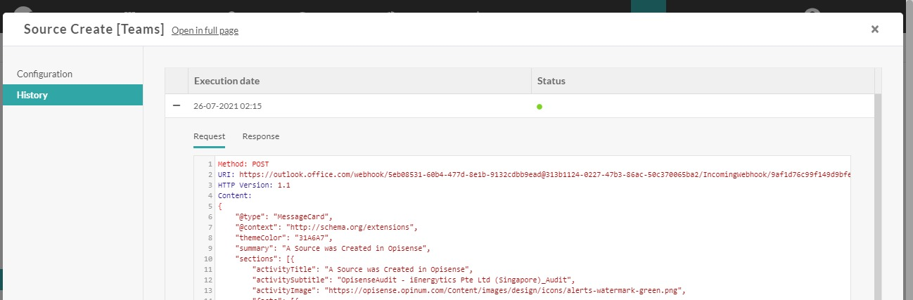 - History retention period: shows the retention period of the webhooks, in hours or days. The maximum retention is 30 days.
