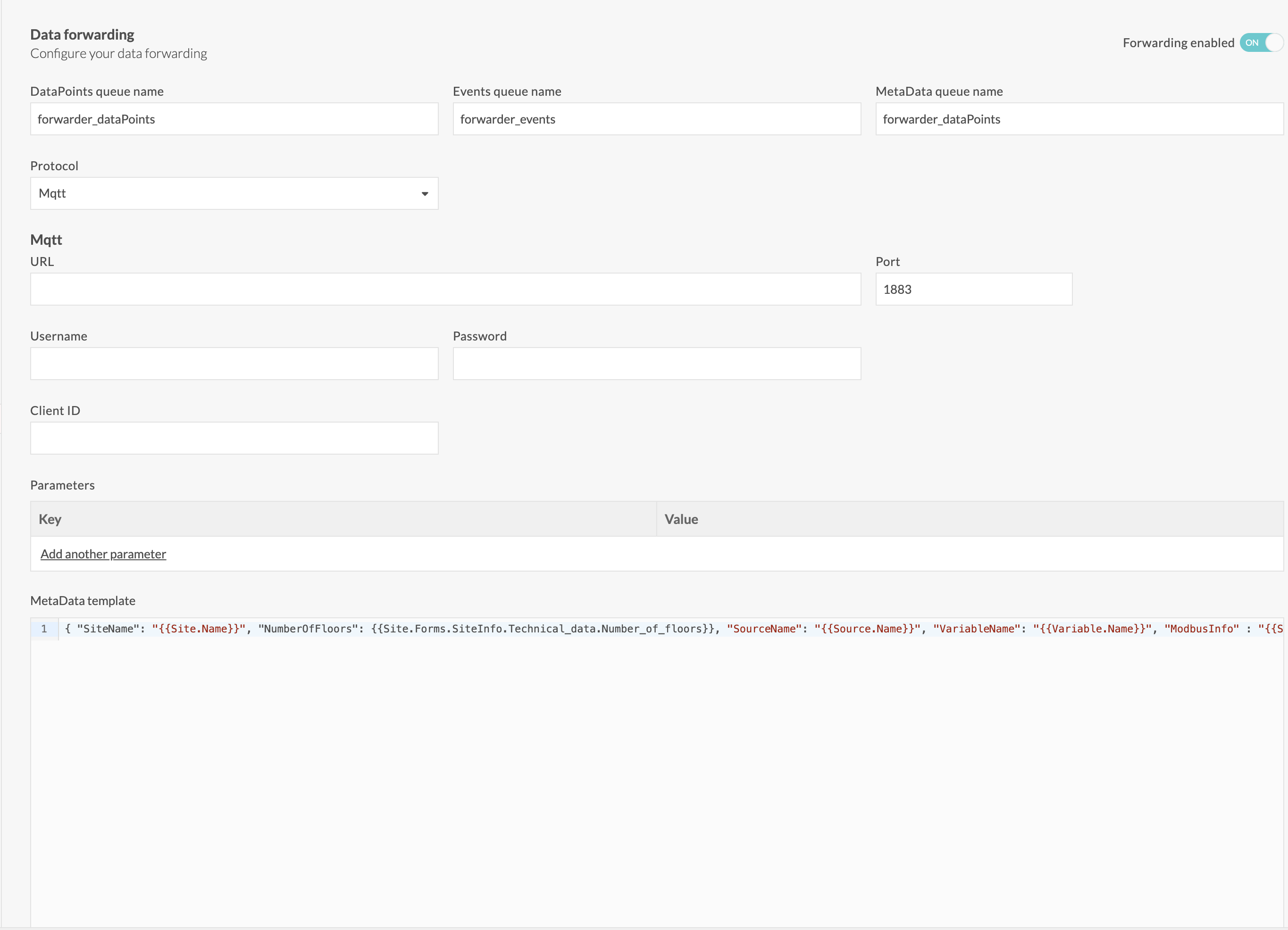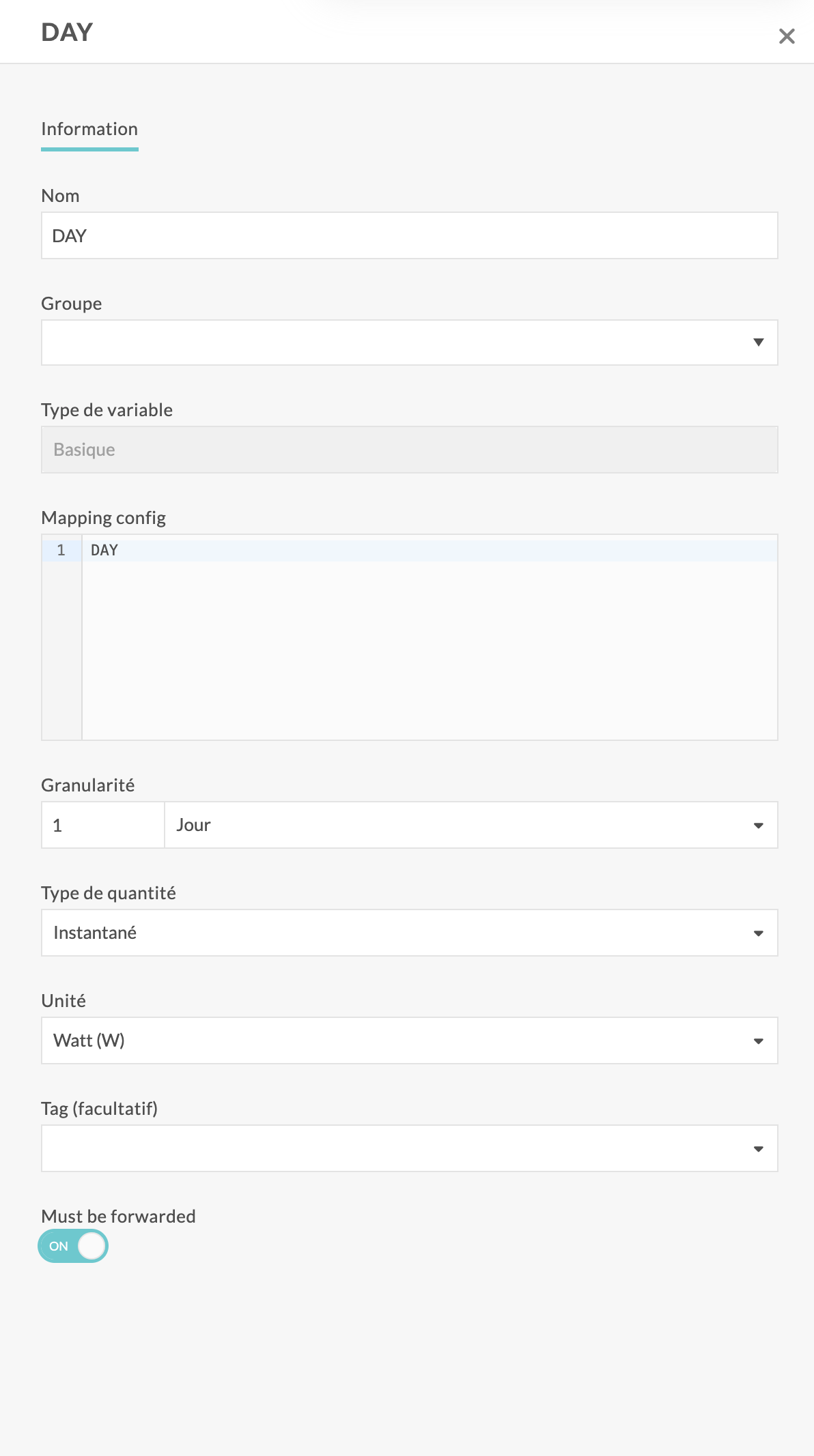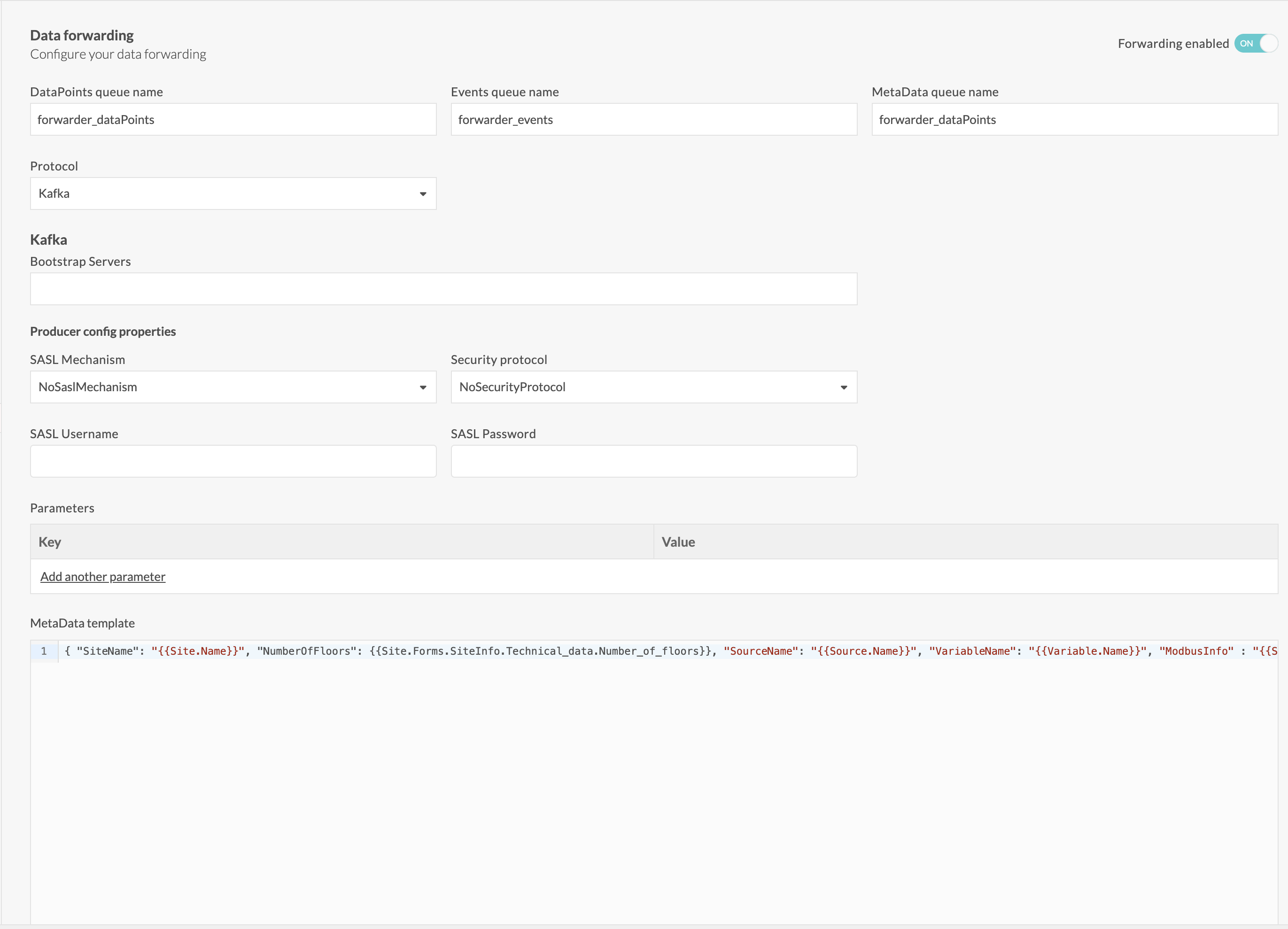 A toggle is available in the variable configuration screen. To enable data forwarding for the variable, switch it on.
