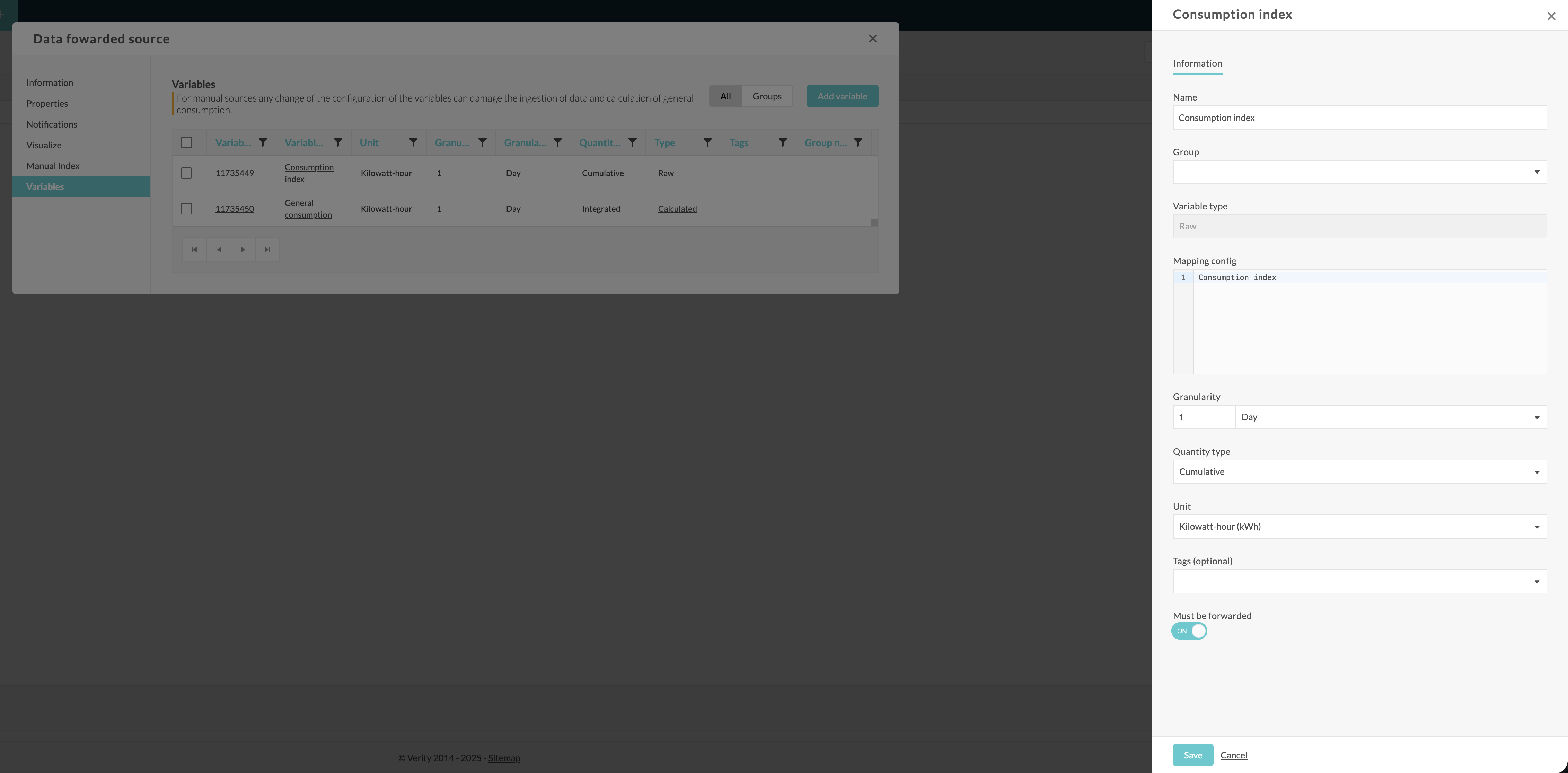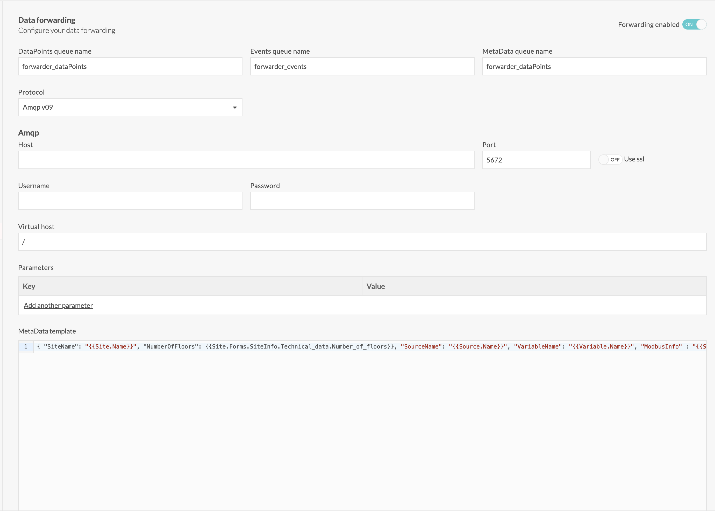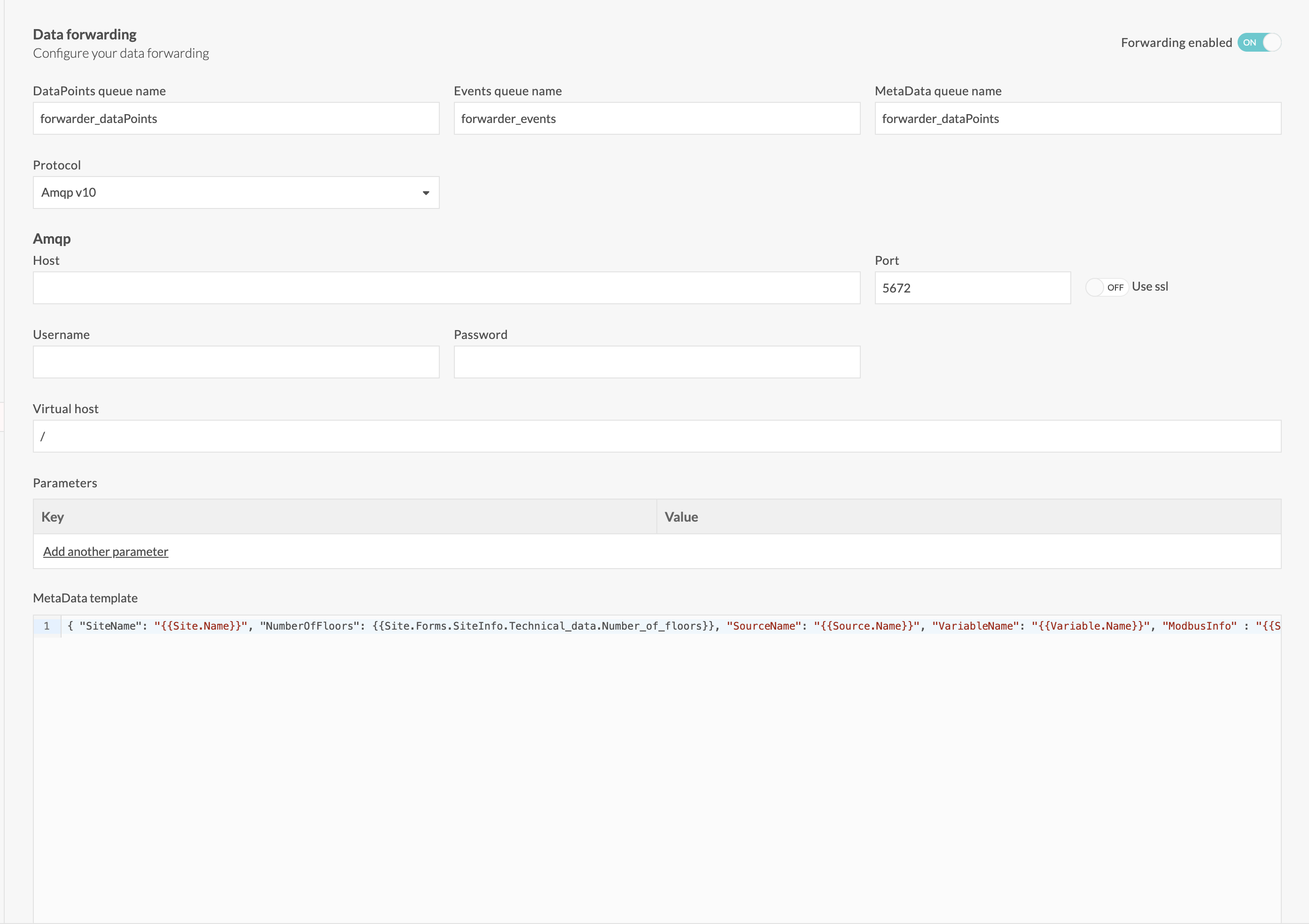 A toggle is available in the variable configuration screen. To enable data forwarding for the variable, switch it on.