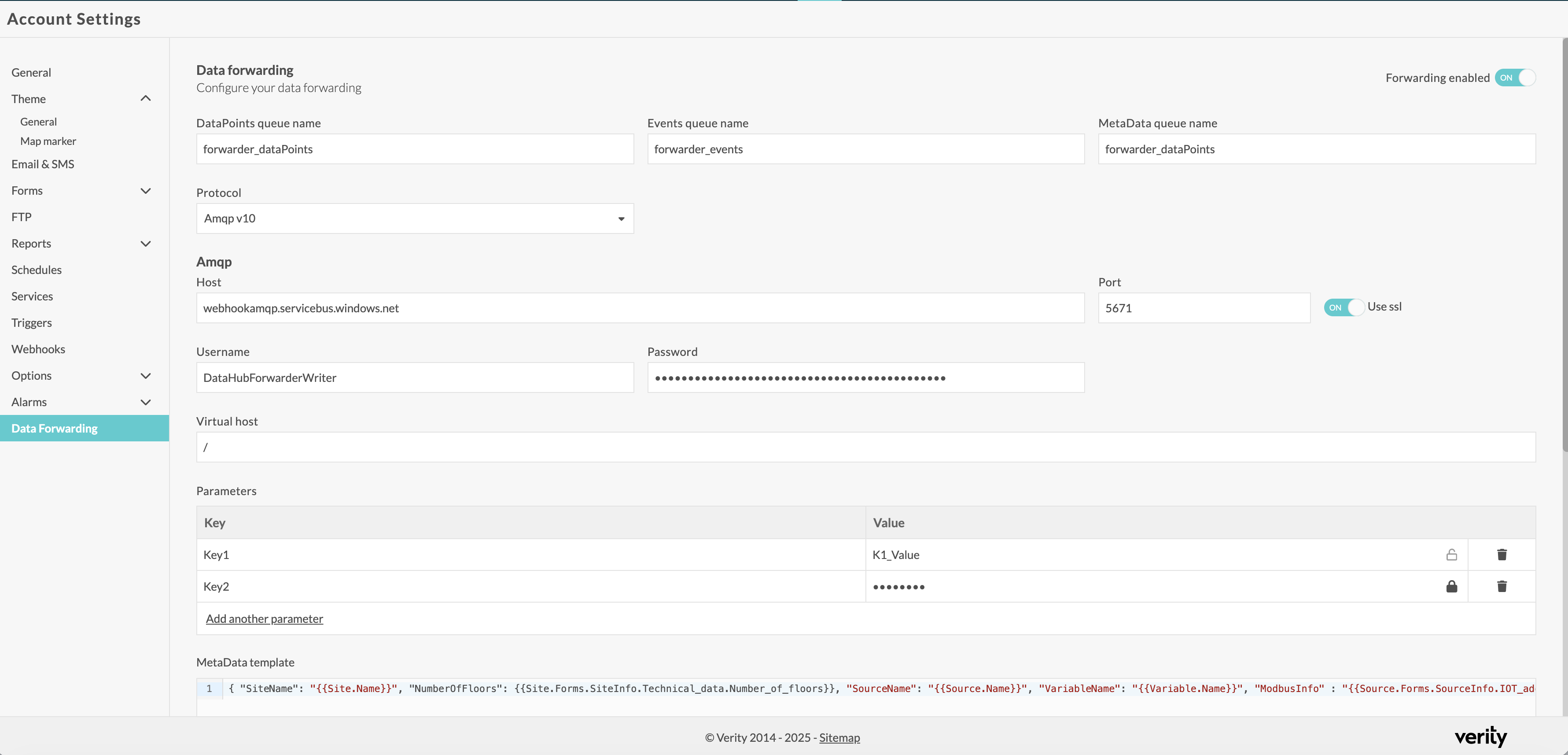 To access the Data Forwarder configuration, you must first have the service activated by your Verity administrator.