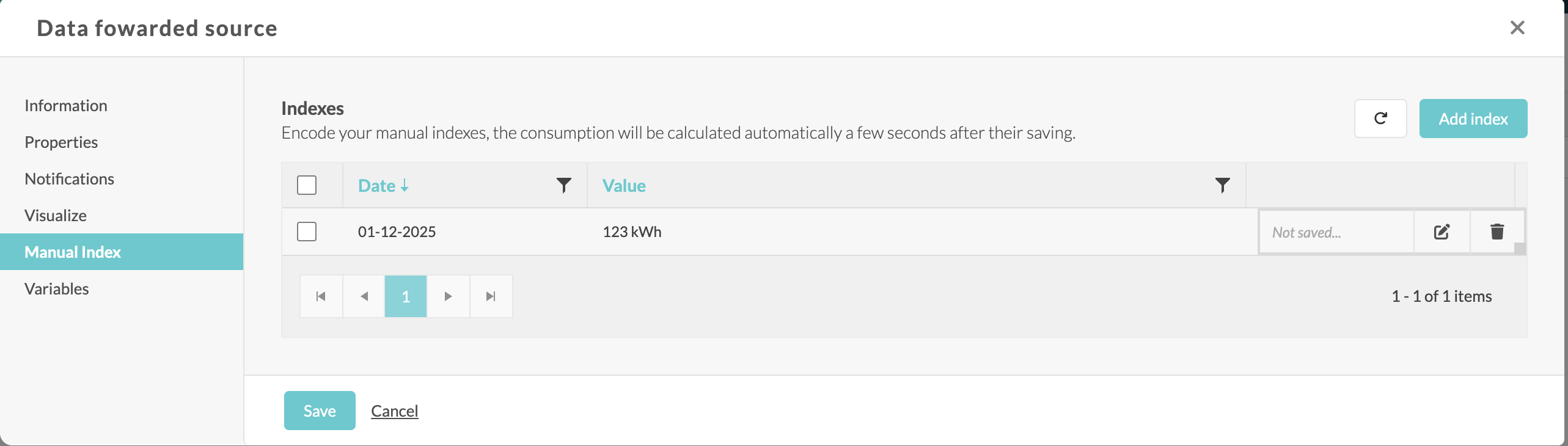Let’s create a source whose SourceType is “Manual Index”.