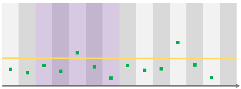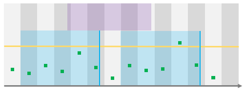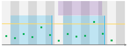 Here, the datapoint that triggered the alert is outside of the exception range, which means that the alert will effectively be evaluated and, in this case, it will be raised as there is a datapoint above the threshold on the rolling period, event though that datapoint is in the exception period.