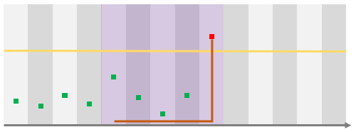 In this case, the result should raise an alert but as it was triggered by the last datapoint (in red), it means that it will be ignored.