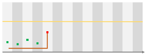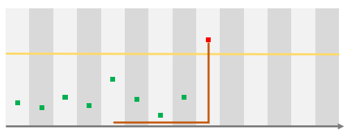 Here we will assume that we just received the red datapoint and that this rolling alert is configured to check on the last 4 periods with a MAX aggregation.